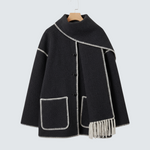 Pauline™ kombinuje pohodlí a styl do jednoho elegantního kousku. Volný střih, měkká tkanina a integrovaný šátek s třásněmi vytvářejí sofistikovaný vzhled, který zároveň poskytuje svobodu pohybu a teplo během chladných dní.