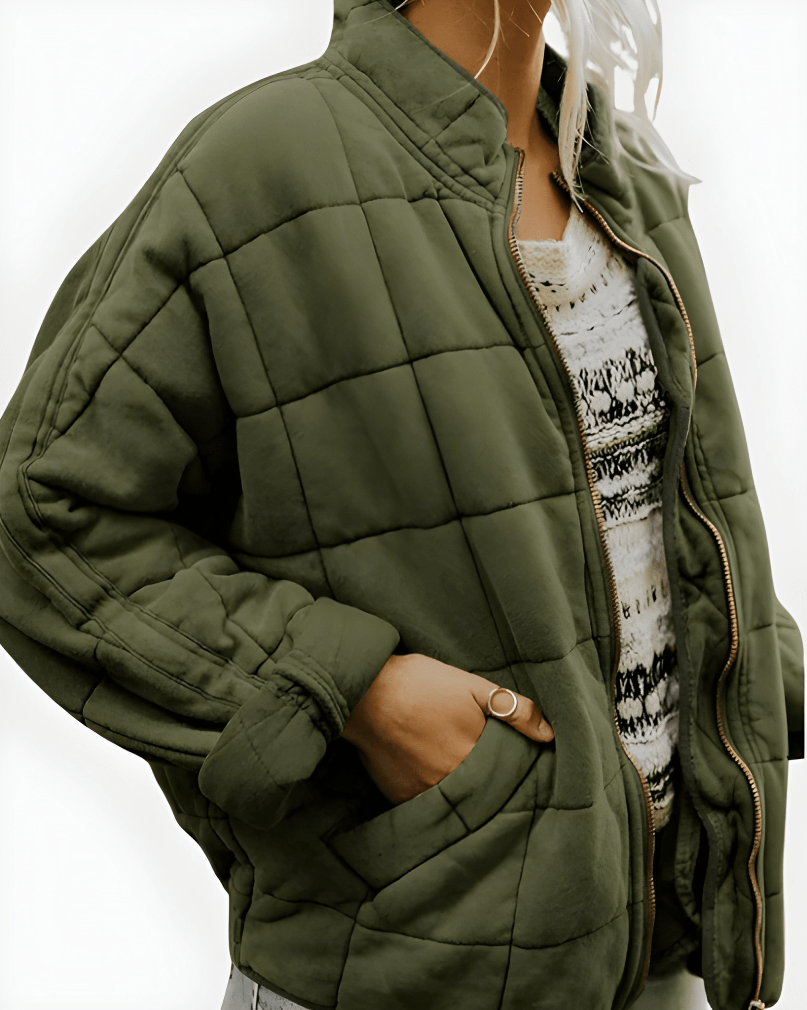 Arja činí svěží rána a chladné večery bezstarostnými, aniž byste museli slevit z pohodlí nebo stylu. Lehká výplň vás udrží příjemně v teple, aniž by bunda působila těžce, a oversized střih vytváří moderní a uvolněný vzhled. Ideální na procházky, nákupy nebo brunch s přáteli.