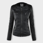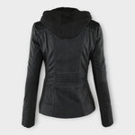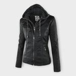 Moderní kožená bunda s kapucí a nadčasovým střihem