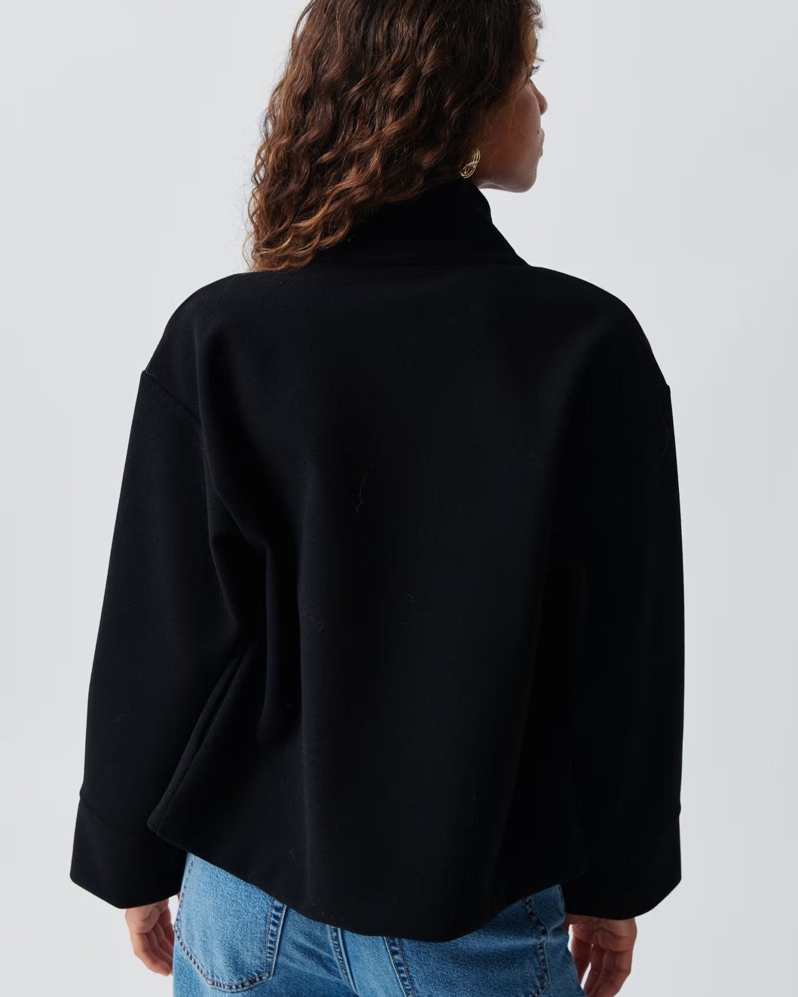 Norava je kabát, který si chcete obléct hned, jakmile první podzimní listy spadnou. Krátký silueta se bez námahy kombinuje se všemi vašimi oblíbenými outfity – od úzkých džín po oversized svetry. Díky elegantnímu límci a šikmému zapínání záříte třídou, aniž byste obětovali pohodlí.
