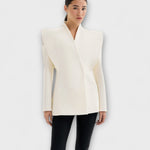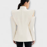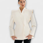 Valeria-sochařský olka-blejzer je moderní statement-kus, který spojuje čisté linie a architektonickou působivost. Ideální pro galerie, módní večeře nebo pro udělání dojmu v práci.
