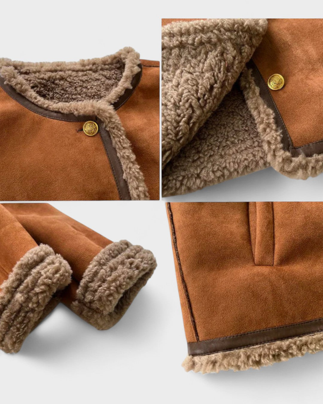 Vylepšete svůj zimní styl s Rosalie™ – elegantním jehněčím kožichem s knoflíky, který spojuje teplo, ženskost a nadčasovou eleganci.