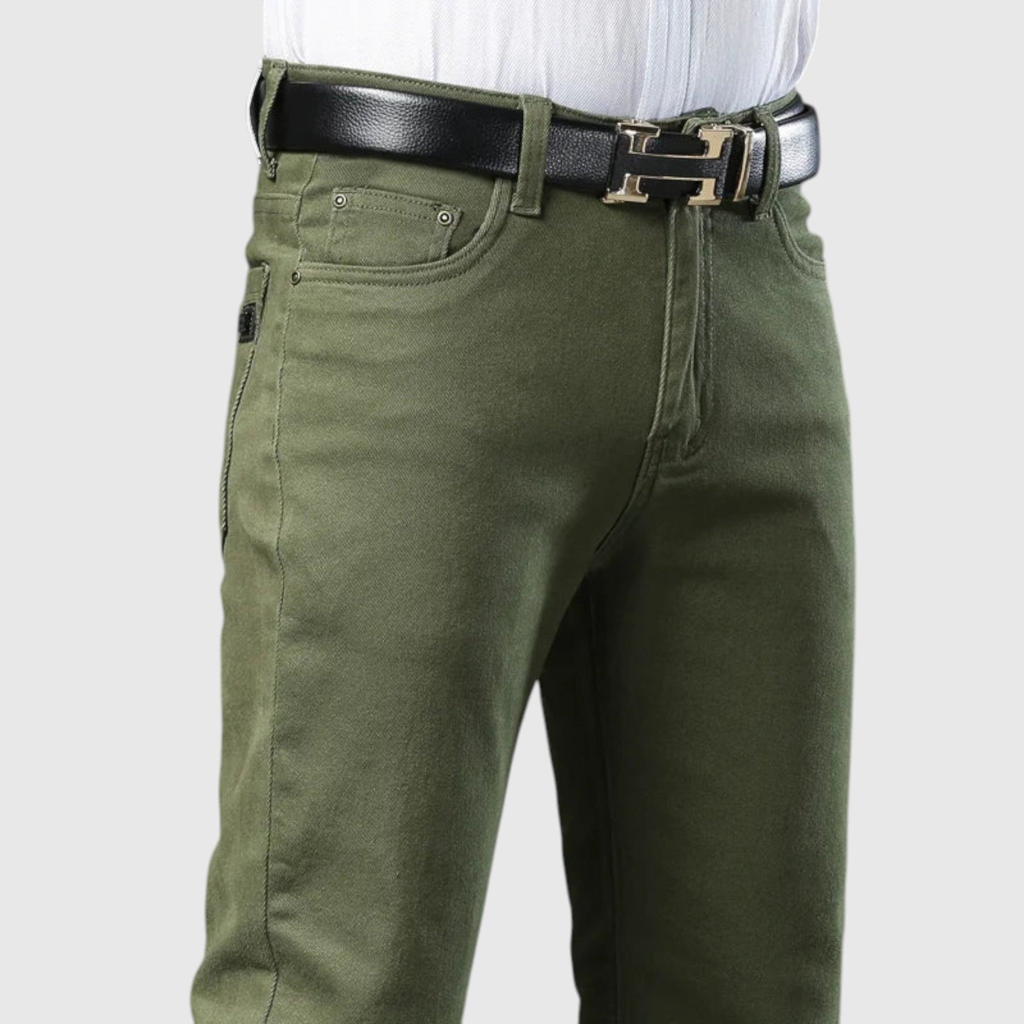 Džíny Elegant Cotton jsou určeny pro muže, kteří si cení nadčasového designu s vynikajícím komfortem. Vyrobeny z vysoce kvalitní bavlny, nabízejí prodyšný dotek a přizpůsobený střih - ideální pro neformální dny, smart-casual vzhled nebo elegantní večery.