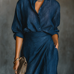Objevte elegantní maxi šaty, které posunou váš styl na vyšší úroveň. Nadčasový střih v klasickém tmavě modrém odstínu je ideální jak pro formální příležitosti, tak i pro volné, každodenní outfity.