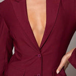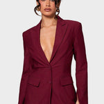Dejte svému šatníku elegantní aktualizaci s Valentínou – multifunkčním blejzrem bez límce, který se perfektně hodí do práce, na každodenní aktivity nebo na slavnostnější příležitosti. Hluboká bordeaux červená barva a nadčasový střih dělají z tohoto blejzru must-have kousek moderní ženy.