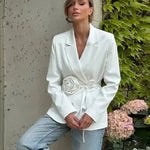 Tento klasický blejzr nabízí přizpůsobený střih, pevné ramena a lichotivou siluetu. Jednoduché zapínání vpředu vytváří čistý a upravený vzhled, zatímco ozdobné manžety a ostré límce přinášejí nadčasové kouzlo. Kombinujte s džíny nebo přes halenku – to je jistá volba pro okamžitou stylovost a sofistikovanost.