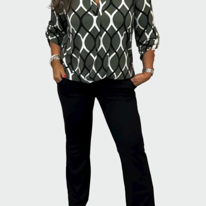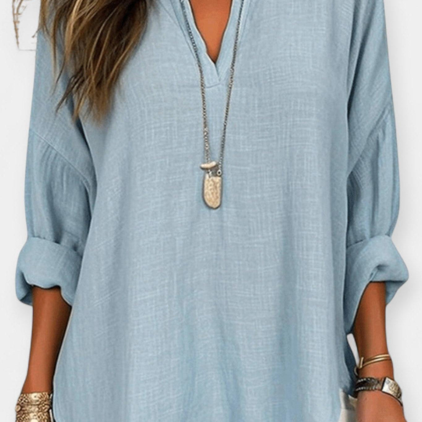 Joana - Stylová dlouhá rukávová blůza s ostrým výstřihem