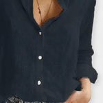 Tato košile vyzařuje eleganci a jedinečnost díky svým jemným detailům a lichotivému střihu. Působivý model s decentním vyšíváním a stylovým výstřihem do V ji činí výjimečnou volbou pro všechny příležitosti. Oblékněte si ji a snadno pozvedněte svůj outfit a přitáhněte pohledy.
