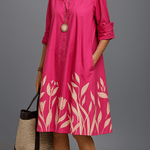 Šaty Liane spojují nadčasovou siluetu s krásou inspirovanou rostlinami. Lesklý fuchsiový odstín a elegantní krémový květinový vzor na sukni dodávají tvému každodennímu stylu umělecké kouzlo. Ať už jsi na zahradní párty, vychutnáváš si víno na terase nebo trávíš krásný den, Liane přináší luxus do každého okamžiku – bez přehnané okázalosti. Klasický design košilových šatů udržuje vzhled praktický a snadno nositelný, zatímco květinový vzor dotváří celek s rafinovaným nádechem. Lehká, vzdušná a plná šarmu – v Liane se pohybuješ životem sebevědomě a bezstarostně stylově.