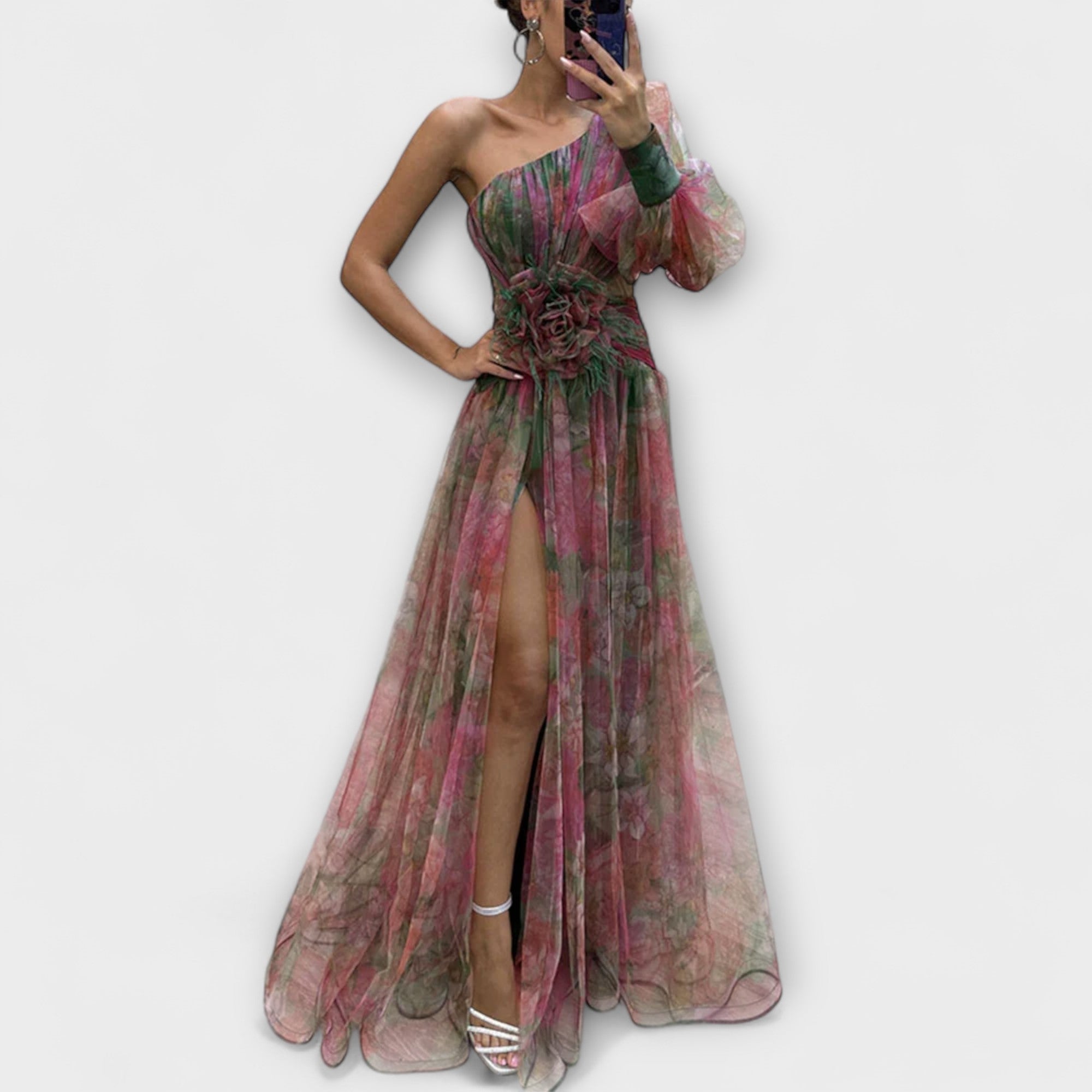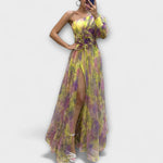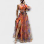 Ilona | Šaty s jedním rukávem a rozparkem z průhledné síťoviny