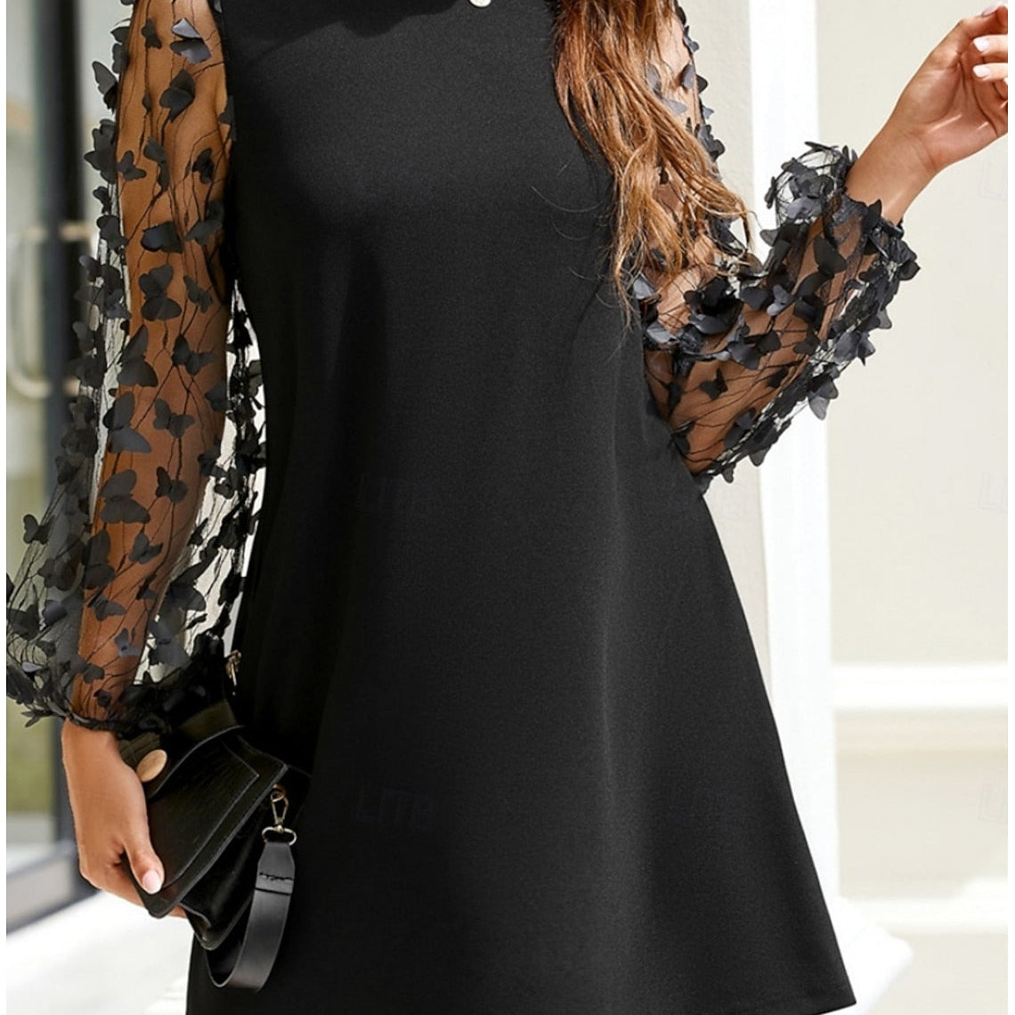 Nela | Černé elegantní šaty s květinovými rukávy z tylu