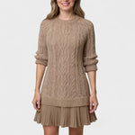 Sofie je klasikou šatníku, kde se setkává nadčasovost s odpovědným luxusem. Řemeslné zpracování se projevuje v každém švu a materiály jsou vybírány s ohledem na kvalitu a trvanlivost. Znovu použitá příze poskytuje hlubokou, jemnou strukturu a lehké teplo, které činí šaty použitelné napříč sezónami. Výrobní proces odráží naše dědictví excelence a diskrétnosti: omezený počet, pečlivě vybrané zdroje a nadčasový styl, který nenásleduje krátkodobé trendy. Sofie zahrnuje klasickou siluetu s mini délkou, která osloví ty, kteří si cení rafinovanosti a ekologického povědomí.