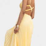 Živý a ženský, šaty Arlena okouzlují plisovaným siluetem, V-výstřihem a otevřeným zádovým dílem. Jsou navrženy pro ty, kteří hledají lehkost, eleganci a volnost pohybu – ideální pro slunečné příležitosti, venkovní oslavy nebo okouzlující letní večery.
