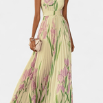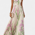 Šaty Calanthe vyzařují jemnou eleganci díky svému stylovému čtvercovému výstřihu, skladanému šifónovému materiálu a snovému květinovému vzoru v levandulových odstínech. Perfektní šaty na slunečné odpoledne a nezapomenutelné chvíle venku.
