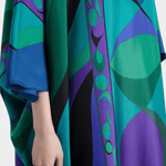 Fiorella kaftan je volný a splývavý, pohybuje se hladce s každým krokem. Unikátní Iride vzor s psychedelickými barevnými víry dělá z každého okamžiku umělecký projev stylu a energie.
