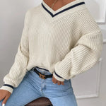 Výrazné kontrastní pruhy dodávají hravý barevný akcent, zatímco měkce spadající ramena dotvářejí ležérní elegantní vzhled. Ať už ke džínům pro pohodový outfit, nebo přes halenku pro šik vzhled – Marina kombinuje pohodlí se stylem.