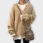 Tento pletený svetr pro ženy je dokonalým společníkem na chladné zimní dny. Se svým klasickým copánkovým vzorem a dlouhými rukávy nabízí nejen teplo, ale také elegantní, přesto ležérní vzhled. Svetr byl vyroben z měkkého, prodyšného materiálu, který zajišťuje příjemný pocit při nošení a zároveň optimální ochranu před chladem.