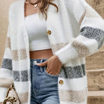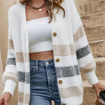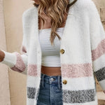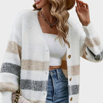 • Snadné zapínání na knoflíky – velké přední knoflíky nabízejí bezpečné uzavření a elegantní detail. Můžete nosit svetr rozepnutý nebo zapnutý pro dosažení všestranného stylu.