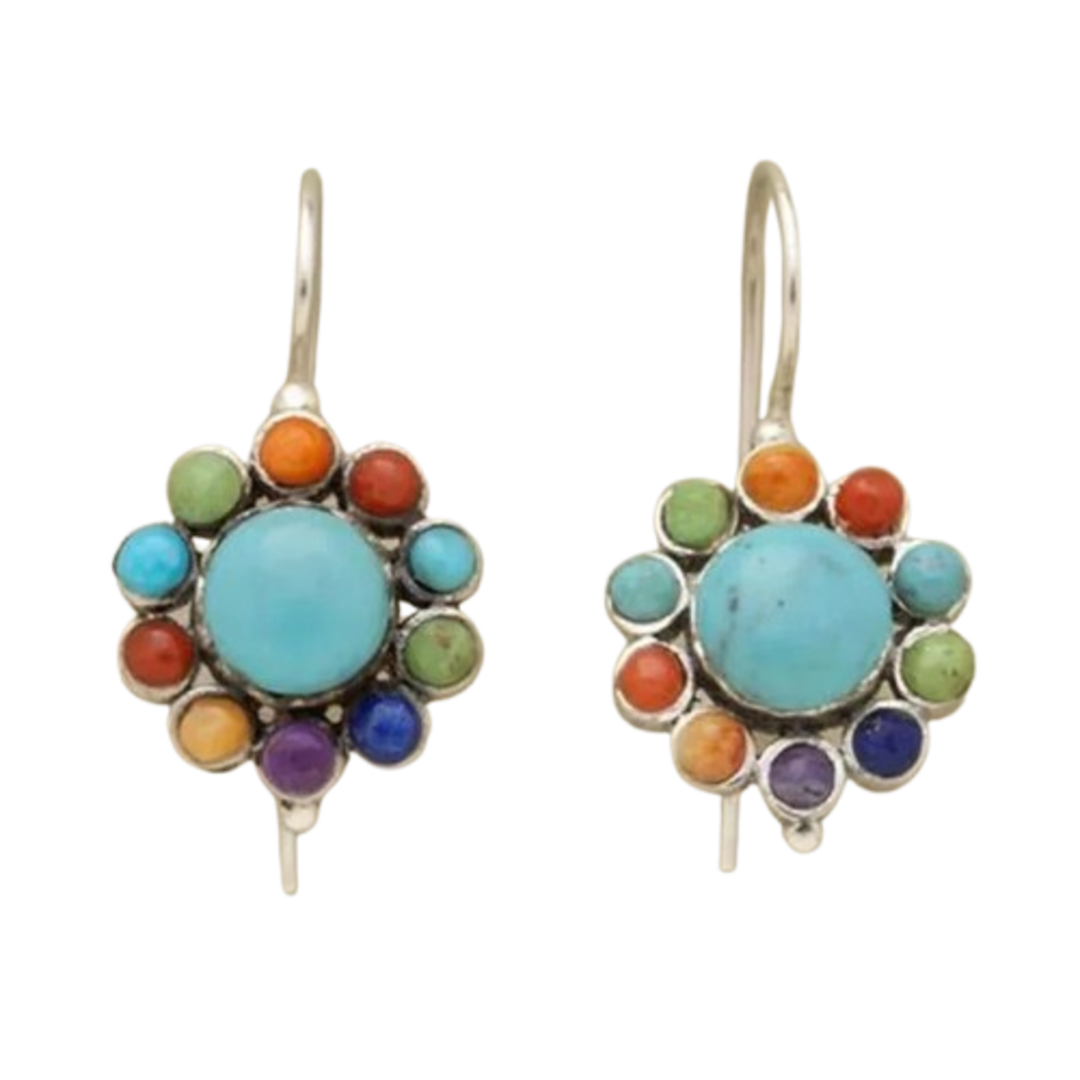 Vícebarevné kulaté náušnice v tyrkysové barvě