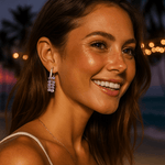 Objevte úžasné náušnice, které jsou vyrobeny s precizním řemeslným zpracováním a kombinují eleganci s romantickým designem. V teplém zlatém odstínu náušnice předvádějí vodopád fialových kamenů a třpytivých bílých krystalů – každý kámen je broušen tak, aby vytvářel dokonalou hru světla. Každý kámen je zasazen ručně, což zajišťuje, že každý pár náušnic je jedinečný a originální.