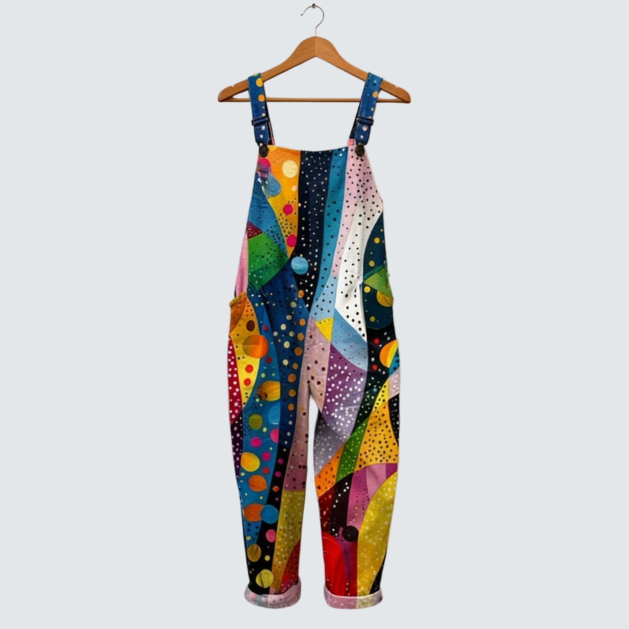 Tento uvolněný overal spojuje pohodlí a jedinečný design do oděvu, který chcete nosit každý den. Volný střih, praktické kapsy a hravé detaily z něj dělají ideální kousek na procházky, výlety nebo relaxační chvíle doma.