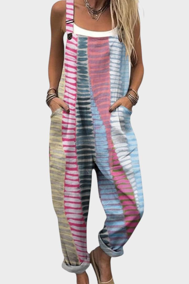 Tento pohodlný overal spojuje komfort a jedinečný design do oděvu, který si zamilujete nosit každý den. Volný střih, praktické kapsy a hravé detaily z něj dělají ideální volbu na procházky, výlety nebo relaxační chvíle doma.