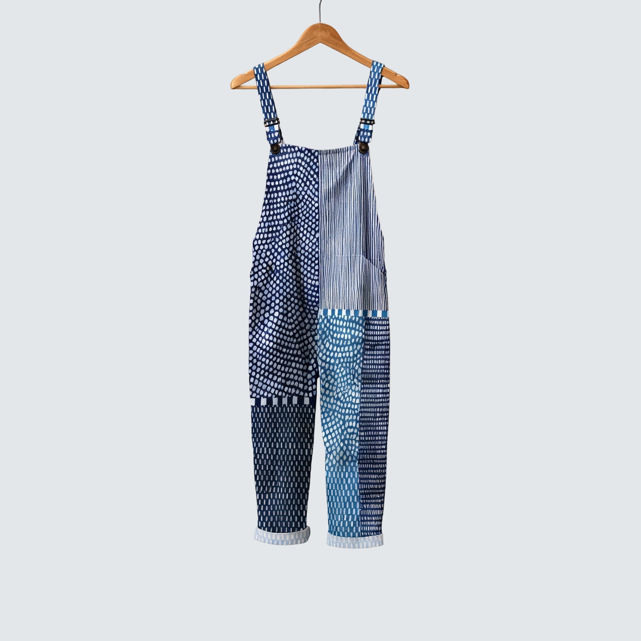 Tento pohodlný overal spojuje komfort s jedinečným designem, který si zamilujete nosit každý den. S volným střihem, praktickými kapsami a hravými detaily je to ideální volba na procházky, výlety nebo relaxační chvíle doma.