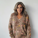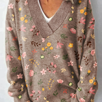 Květinový umělecký potisk Pletený svetr s výstřihem do V