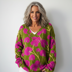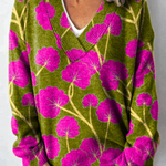 Vintage květinový umělecký tisk pletený svetr s výstřihem do V