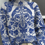 Vintage symetrický vzor tištěný pletený rolákový svetr
