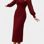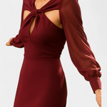 Šaty Julissa™ spojují sofistikovanou vínovou barvu s detaily, které zvýrazňují siluetu a dodávají jí jedinečný charakter. Zavázaný výstřih s jemnými střihy krásně rámuje dekolt, zatímco otevřený zadní díl přidává svůdný nádech. Lehoučké šifonové rukávy přinášejí lehkost a pohyb, v rovnováze s tělem přiléhající midi sukní, která plynule prodlužuje siluetu.