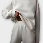 Dorica™ přináší dokonalou rovnováhu mezi pohodlím a městskou estetikou. Oversized mikina a kalhoty s vysokým pasem tvoří nadčasový outfit pro uvolněné dny, cestování nebo moderní street styl. Jemný, měkký materiál se přizpůsobí tělu a dodá pocit lehkosti i tepla.