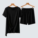 Lorena™ set spojuje moderní ženskost a bezstarostné pohodlí. Lehká blůza s asymetrickým nařasením působí sofistikovaně, zatímco šortky s volným střihem dodávají outfitu svěžest a pohyb. Prodyšný materiál zaručuje komfort i v horkých dnech – ideální pro městské procházky, cestování nebo elegantní letní večery.