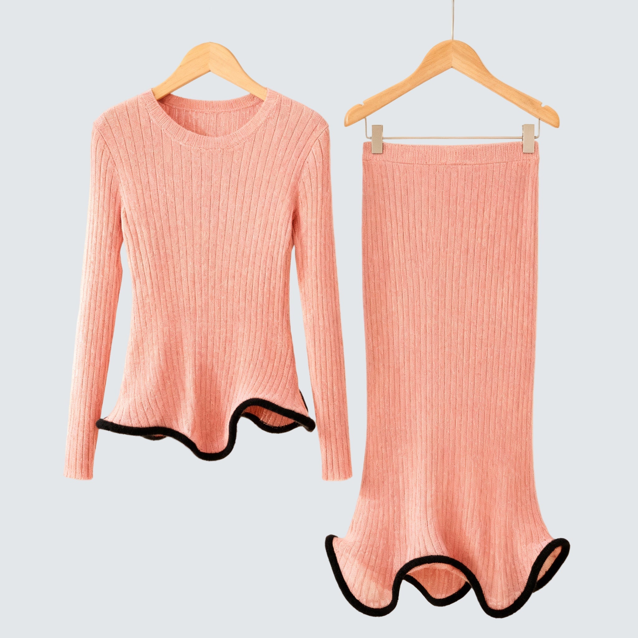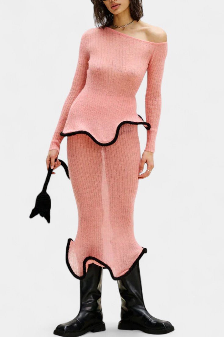 Stormi™ přináší kombinaci ženské elegance a moderní odvahy. Asymetrický top s jedním ramenem kontrastuje s poloprůhlednou midi sukní, čímž vytváří outfit, který je zároveň hravý i sofistikovaný. Jemné barevné tóny a promyšlený střih z něj dělají výrazný kousek pro stylové chvíle.