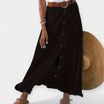 Lehká a elegantní, tato sukně vyzařuje decentní ženskost a nabízí flexibilitu pro každou příležitost. S mírně poloprůhlednou tkaninou a knoflíky vpředu, nosí se od rána do večera s vhodným stylingem.