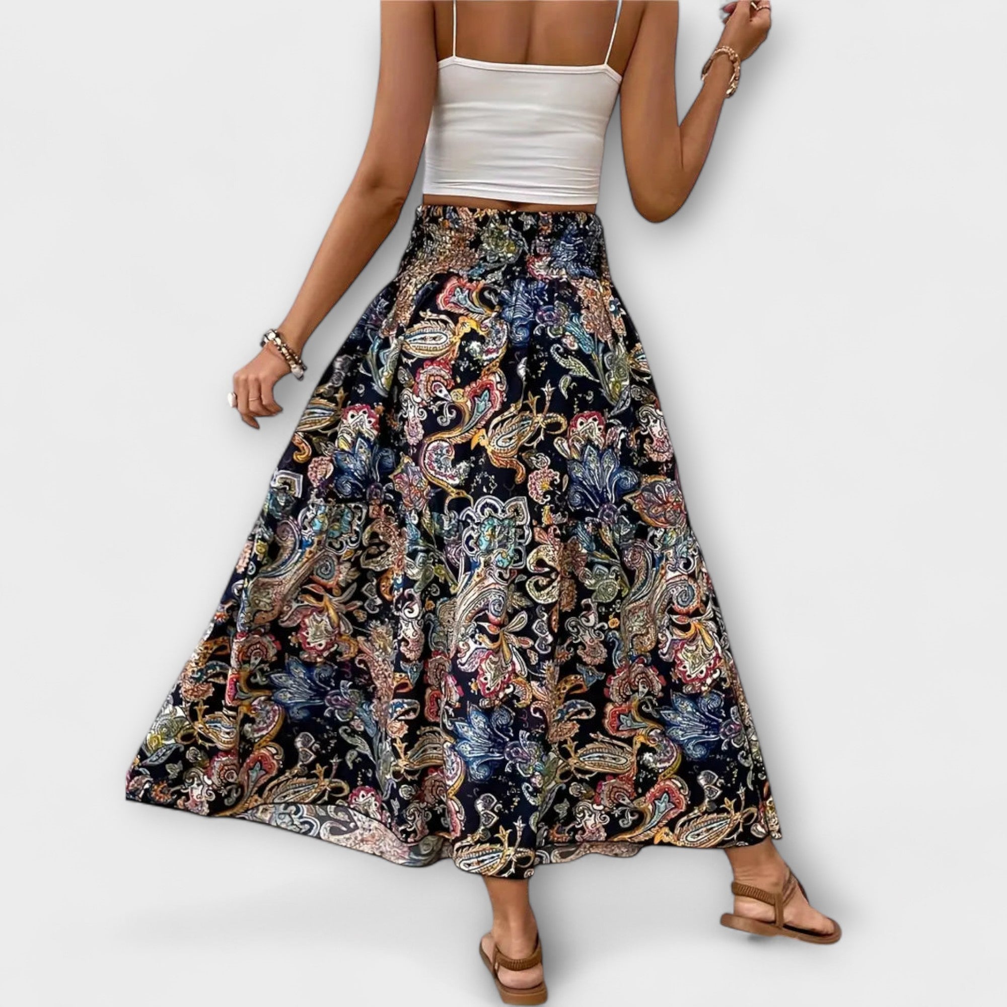 Objevte čistou pohyblivost s touto sukní, která vypráví příběhy. Jedinečný vzor a pohodlný materiál dodávají vašemu vzhledu nádech zvláštní elegance.