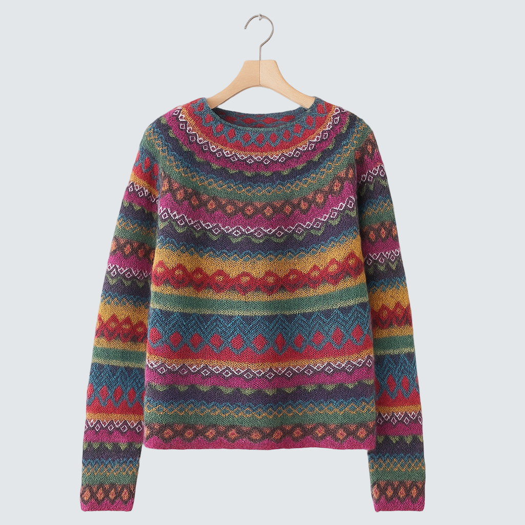 Svetr Iveta přináší do zimních dnů radost, pohodlí a originalitu. Jeho jedinečný vzor inspirovaný severským stylem zaujme na první pohled, zatímco měkký úplet se postará o maximální komfort po celý den. Je ideální pro ty, které milují hravé barvy a chtějí se cítit skvěle i během chladných dnů.