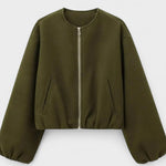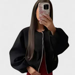 Balónové rukávy, pohodlné zapínání na zip a krátký cropped střih dodávají každému outfitu moderní, sebevědomý vzhled.