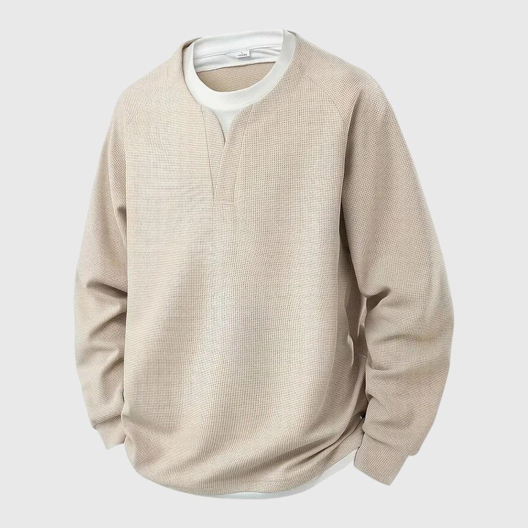 Dlouhý rukáv Alex v sobě spojuje vzhled dvou vrstev s pohodlím jediného kusu. Chytrý design 2 v 1 kombinuje lehký svetr s vaflovou pleteninou a vestavěný bílý spodní díl, čímž vytváří moderní základ pro každý den. Je ideální pro neformální kávová setkání, pracovní dny i uvolněné večery doma.