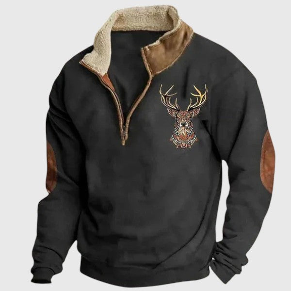 Svetr Christos je vyroben pro chladné dny a venkovní dobrodružství. Měkká fleece podšívka vás udrží v pohodlí, zatímco jelení detail a semišové loketní vycpávky dodávají robustní vzhled.