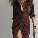 Zažijte okouzlující vintage eleganci s těmito midi šaty, kde se jemné plisované detaily snoubí s rafinovaným designem s ozdobnými knoflíky. Tyto šaty vyzařují luxusní dojem a jsou ideální pro každou příležitost – od elegantní večeře až po půvabný gala večer.