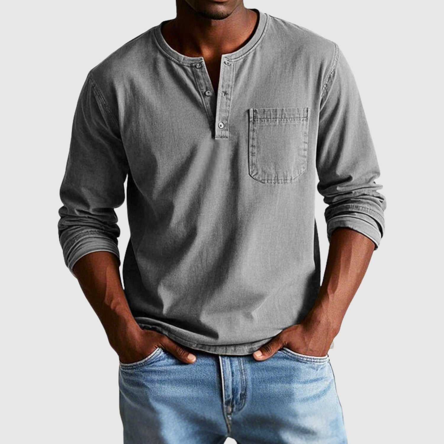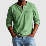 Toto tričko s dlouhým rukávem, inspirované nadčasovým šarmem vintage stylu, nabízí dokonalou kombinaci pohodlí a charakteru. Otevřený výstřih, náprsní kapsa a uvolněný střih z něj dělají univerzální volbu pro neformální looky s autentickým nádechem. Ideální pro ty, kteří ocení oblečení s vlastní identitou.
