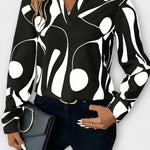 Tato blůza kombinuje stylový a klasický vzhled s moderním nádechem díky černému geometrickému vzoru na béžovém pozadí. Lehká polyesterová tkanina ji činí ideální pro jaro, léto a podzim, a klasický výstřih do V spolu s dlouhými rukávy vytváří univerzální a elegantní styl.