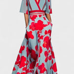 Katri Mekko oživuje umělecký design odvážnými květinovými vzory a hladkou strukturou. Vytvořená pro zahradní oslavy, obědové akce nebo chvíle, kdy chcete okouzlit pohledy, tato šaty spojují ženskost a sebevědomí. Její splývavý tvar a jasný vzor z ní dělají jak nápadnou, tak nadčasovou volbu. Lichotivý výstřih do V, zvýrazněný pas a dramatická dlouhá sukně vytvářejí siluetu, která zdůrazňuje pohyb a přitom zachovává sofistikovanost. Rukávy do délky lokte a přiléhavý vršek vyvažují měkkost květinového vzoru a poskytují dokončený a elegantní vzhled.
