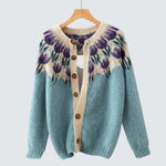 Keysha – Květinový cardigan spojuje měkkost, styl a nádech hravosti do jednoho krásně pleteného kousku oděvu. Cardigan má jemný květinový vzor v odstínech levandule a smetany, což dodává outfitu jemné půvabnosti. Měkký, texturovaný povrch a dřevěné knoflíky dělají z tohoto kousku takový, který se cítí jako teplé objetí – přesně s dostatečným množstvím osobnosti. Ideální pro vrstvení přes základní kousky nebo pro přidání barvy k neutrálnímu outfitu, Keysha je navržena tak, aby se bez námahy vyjímat. Květinový vzor dýchá přírodním nádechem a ženskostí, což z ní dělá ideální volbu pro ty, kteří chtějí do svého stylu přidat jemnější tóny.