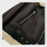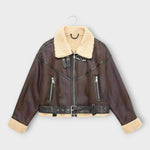 Kožená Krátká Bunda s Kožešinou a Páskem