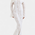Šaty Rosalie kombinují nadčasovou krásu a romantické kouzlo. Jejich ramínka s odhalenými rameny a zvonové rukávy vytvářejí éterický pohyb, zatímco vysoký pas krásně zvýrazňuje vaši postavu. Tyto šaty jsou dokonalou volbou pro nezapomenutelné příležitosti, jako jsou svatby a gala večery.