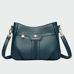 Elegantní dámská taška přes rameno v černé barvě, vyrobená z odolné vysoce kvalitní umělé kůže. Disponuje diskrétním pleteným vzorem ve středu, který dodává zvláštní charakter, zatímco zlaté kovové prvky přidávají pocit luxusu. Nastavitelný popruh umožňuje pohodlné nošení, což z ní činí ideální volbu pro všechny denní hodiny.