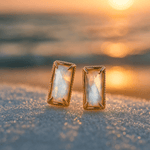 Tyto elegantní náušnice vyrobené ze stříbra 925, pozlacené tvoří geometrický rám, který zvýrazňuje jedinečné kameny. S ostrými rohy a moderními obdélníkovými úchyty spojují moderní design a ženskou přitažlivost – dokonalá volba pro každou příležitost.